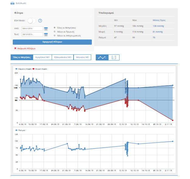 Η υπηρεσία δημιουργεί αυτόματα και με επιστημονικό τρόπο, σημαντικά γραφήματα για την εξέλιξη των μετρήσεών σας.